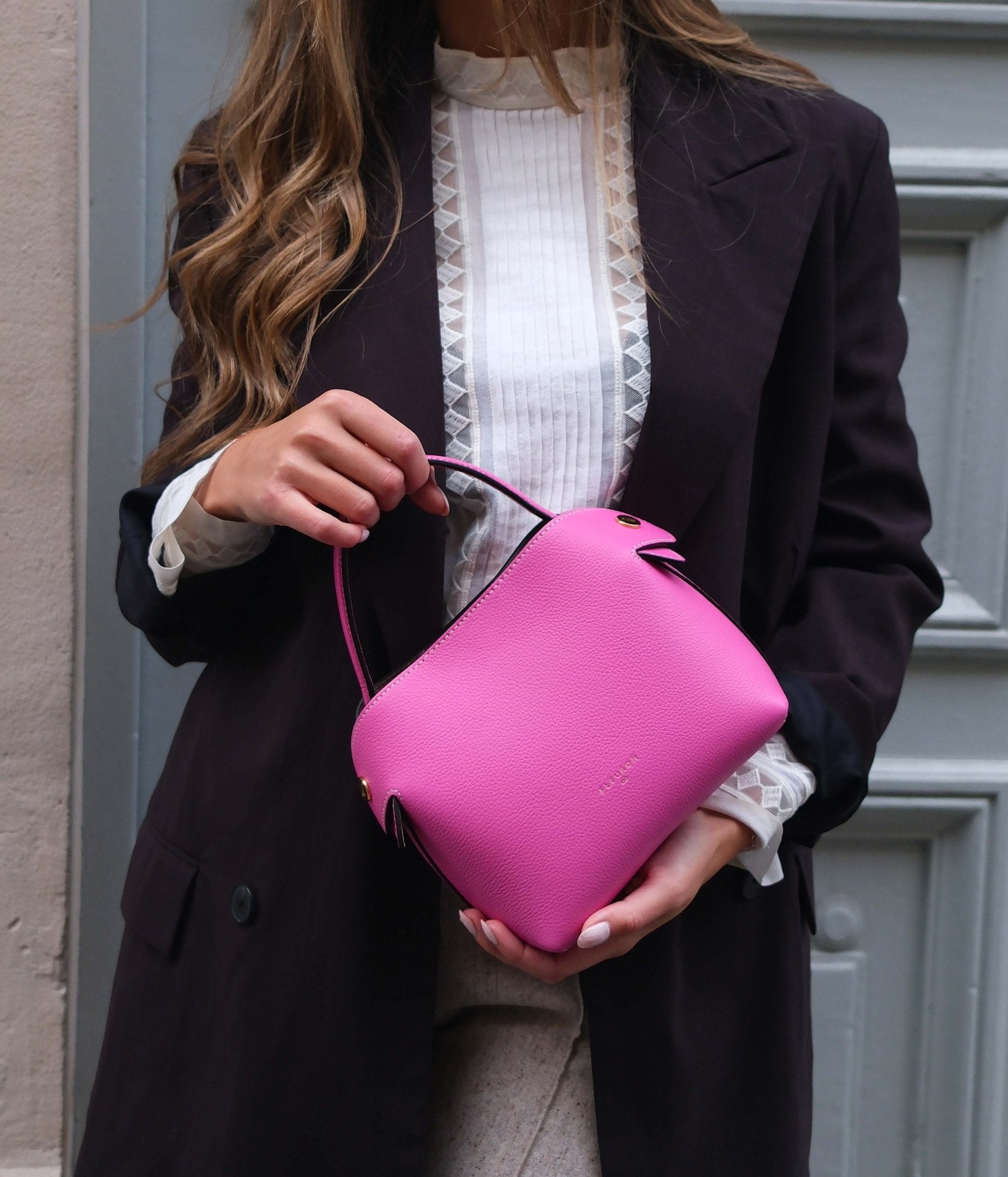 The Mini Swann in Rose Azalée Grained Calfskin brings a vibrant, feminine touch to any outfit. Its bright and modern pink shade pairs effortlessly with neutral tones like ivory, beige, or light grey, and creates a bold contrast with deeper hues such as burgundy, midnight blue, or chocolate brown.