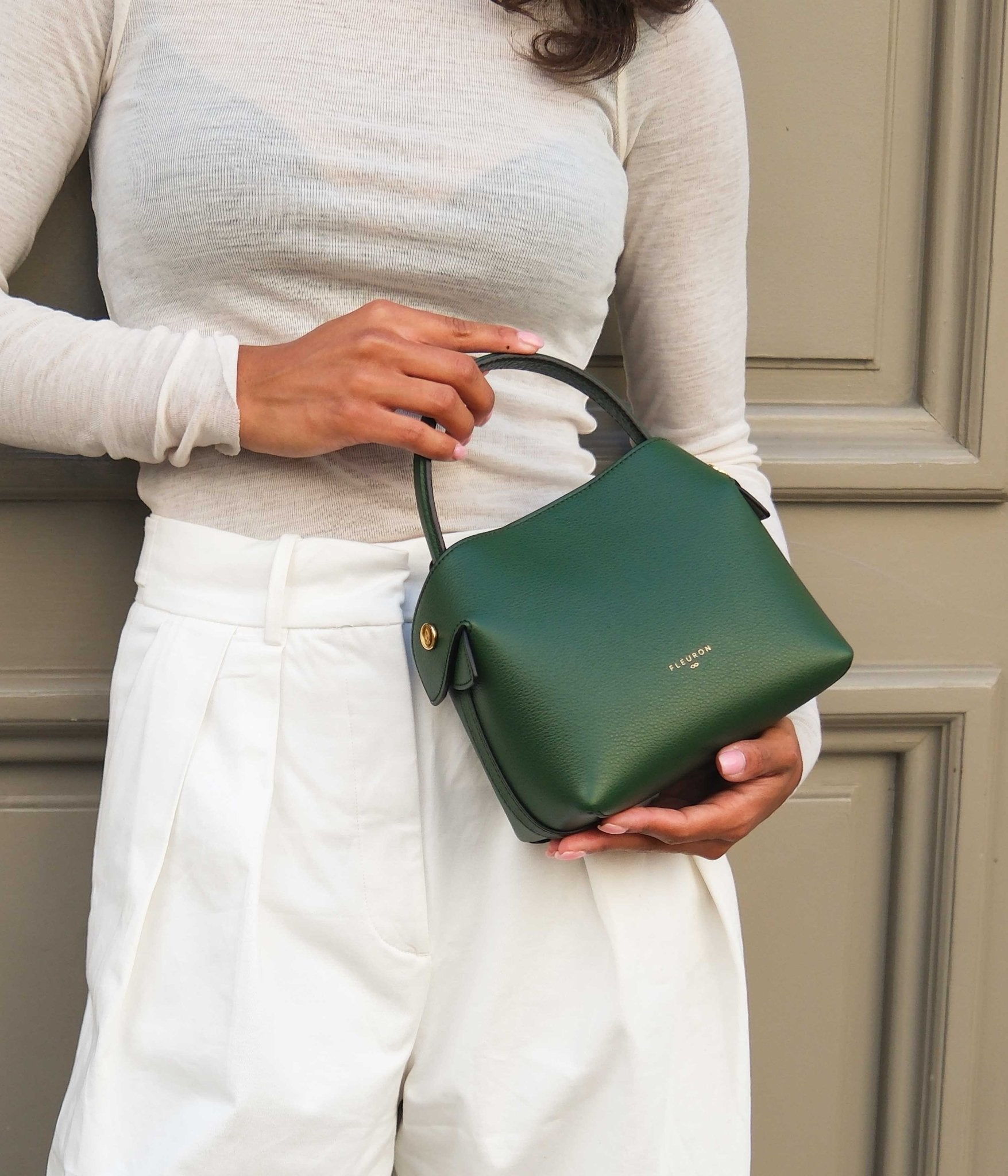 A supple silhouette, an elegant touch with its top handle, the sides fold and unfold like the beating of a wing, for an airy look. The Swann, available in a mini format, has an elongated shoulder strap that leaves your hands free. Channel a natural yet confident elegance with our Mini Swann in Vert Sapin. This deep forest green shade brings subtle character to any look, from daytime casual to evening chic.
