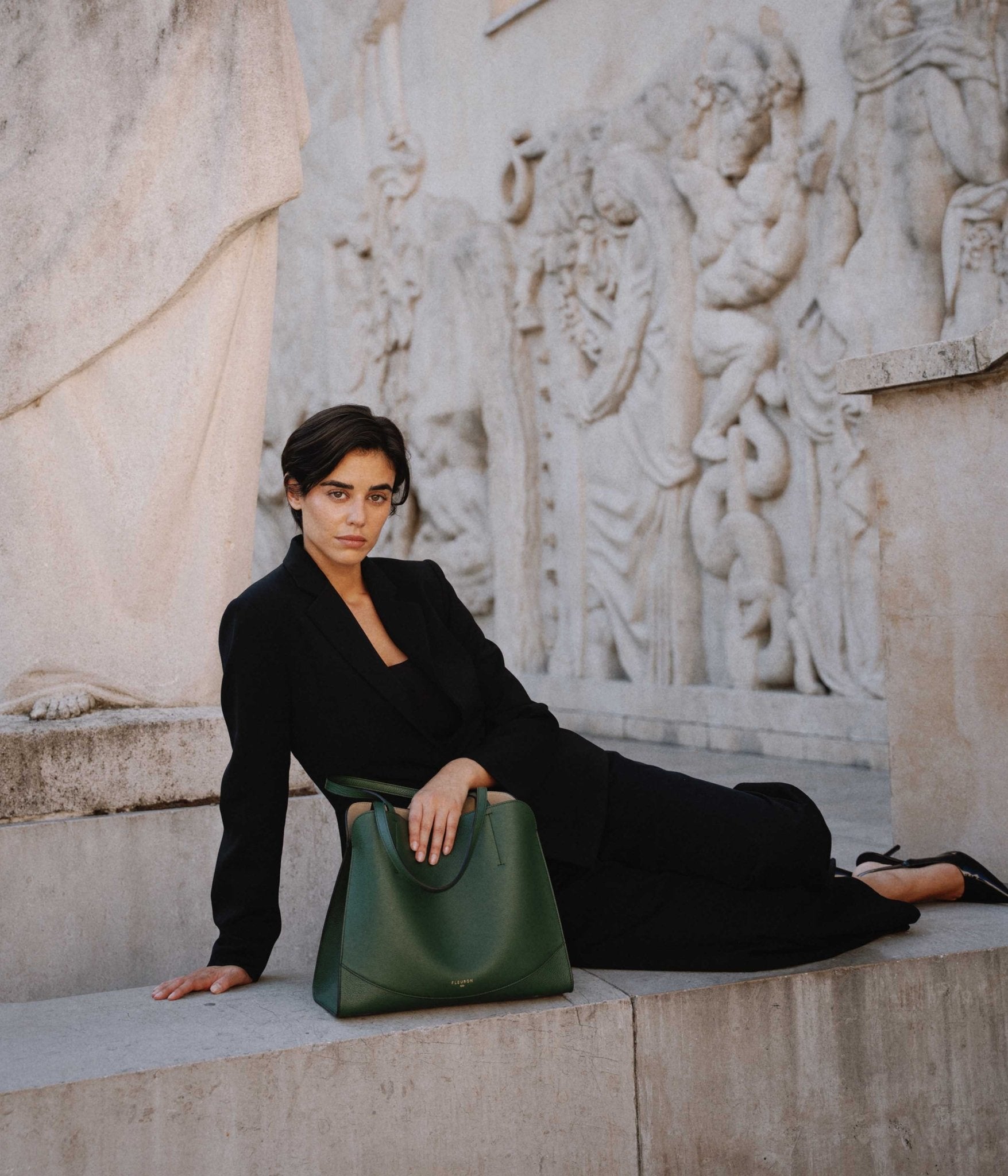 The Medium Oak tote in Vert Sapin stands out as a contemporary essential: a statement piece that blends depth, modernity, and timeless elegance.