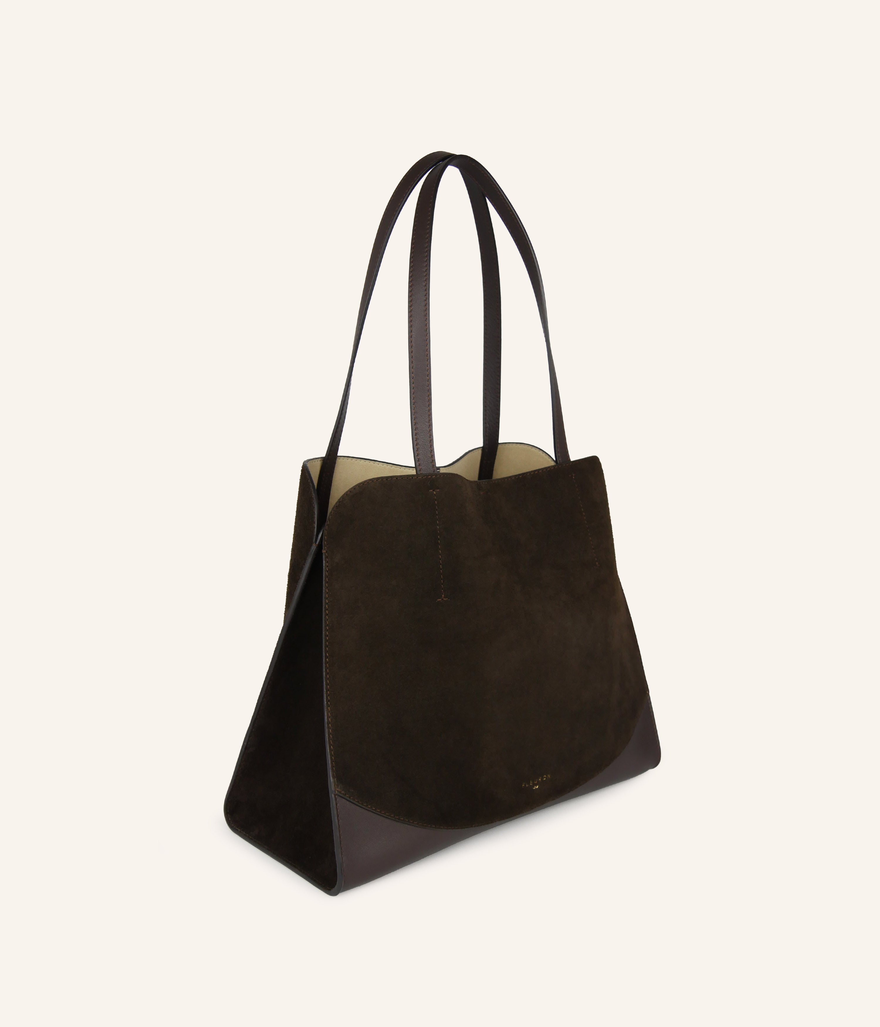 Carefully crafted in Italy, this suede calfskin tote showcases artisanal excellence through its meticulous details. Worn over the shoulder, it moves fluidly with you, balancing comfort and elegance. Its discreet drawstring closure lets you adjust the shape of the bag to suit your style, offering a chic yet relaxed silhouette. The Oak tote in Moka represents the perfect blend of functionality and sophistication, ideal for those seeking timeless elegance without compromising on practicality.