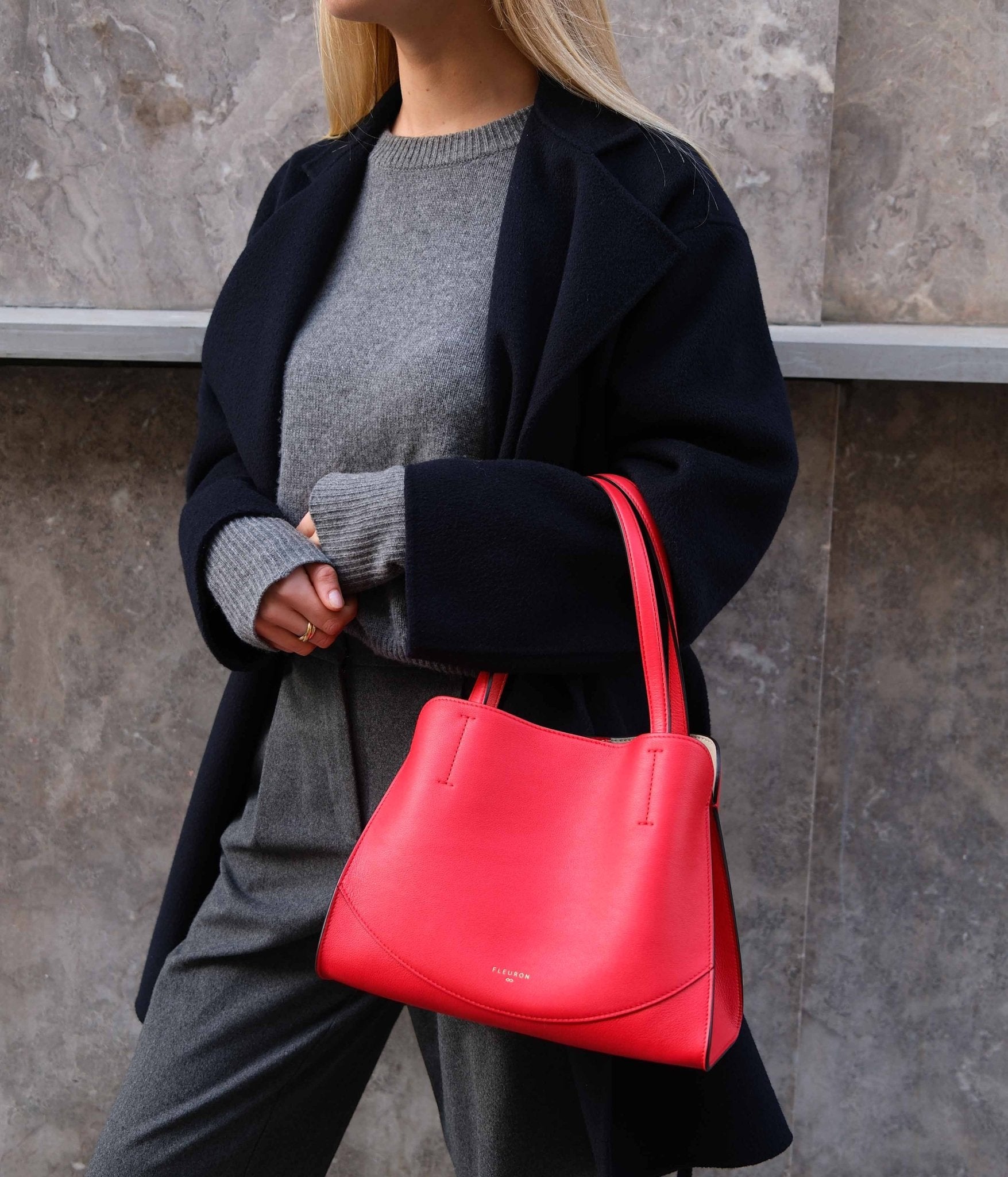Its Goji Berry shade, vibrant yet refined, pairs beautifully with neutral tones like beige, grey, or sand, as well as deeper hues such as navy or chocolate for an elegant and confident contrast.