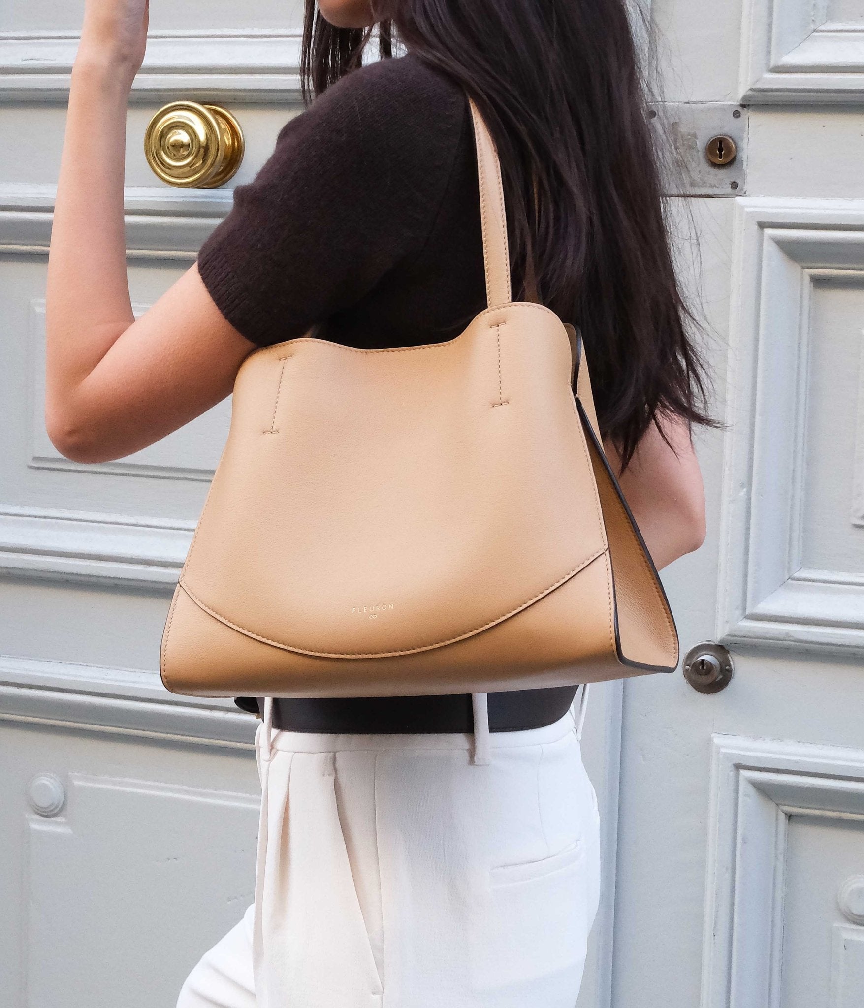 Handcrafted in Italy, it stands out for its smooth leather and meticulous finishing. With its adjustable, removable strap, it can be carried by hand, over the shoulder, or crossbody — a refined and functional companion for every day.