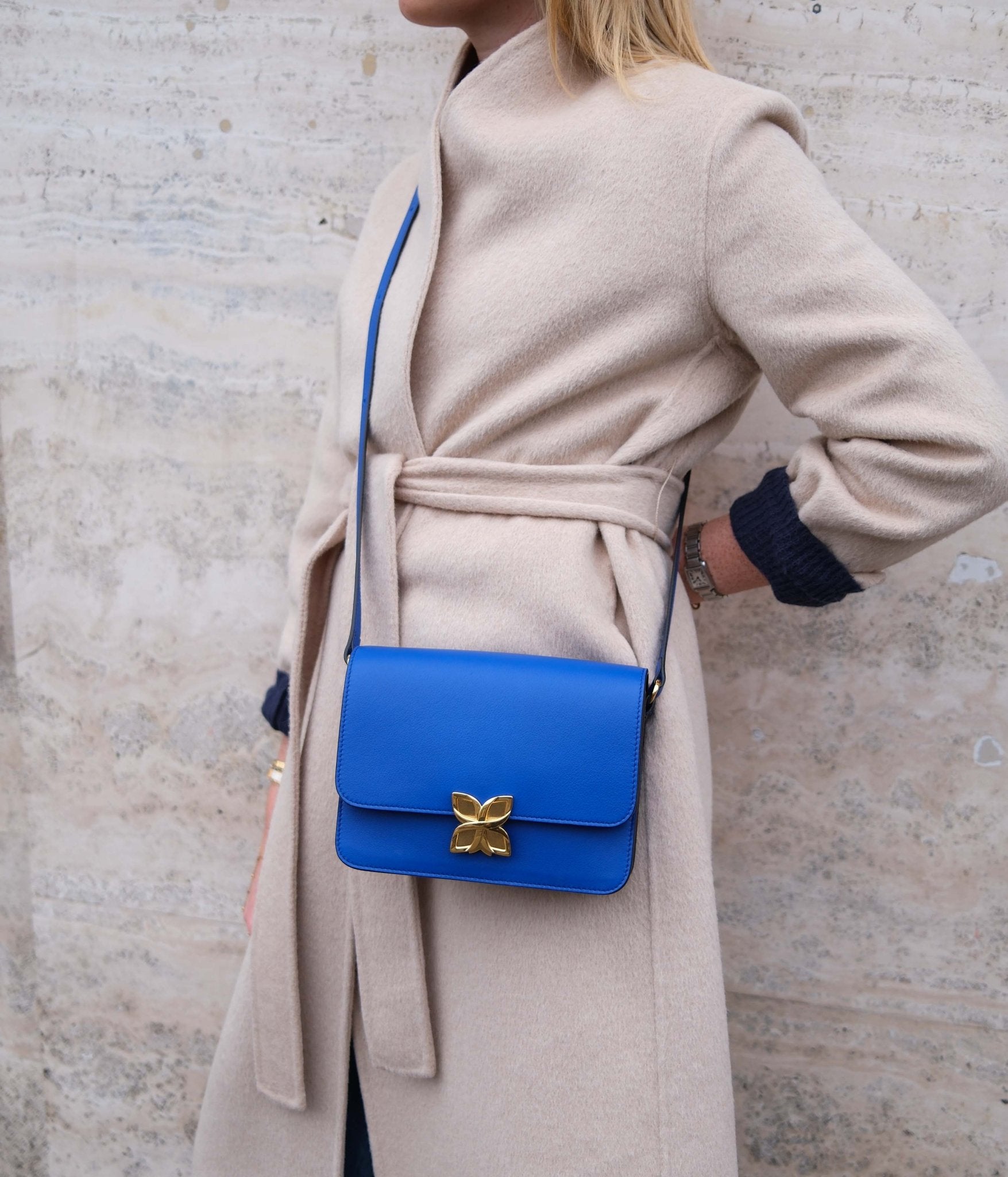 Discover the understated power of the Hortensia bag by Fleuron, crafted from smooth calf leather in a vibrant Bleu Roi shade. Carefully made in our Italian workshops, this piece embodies bold sophistication and timeless elegance.