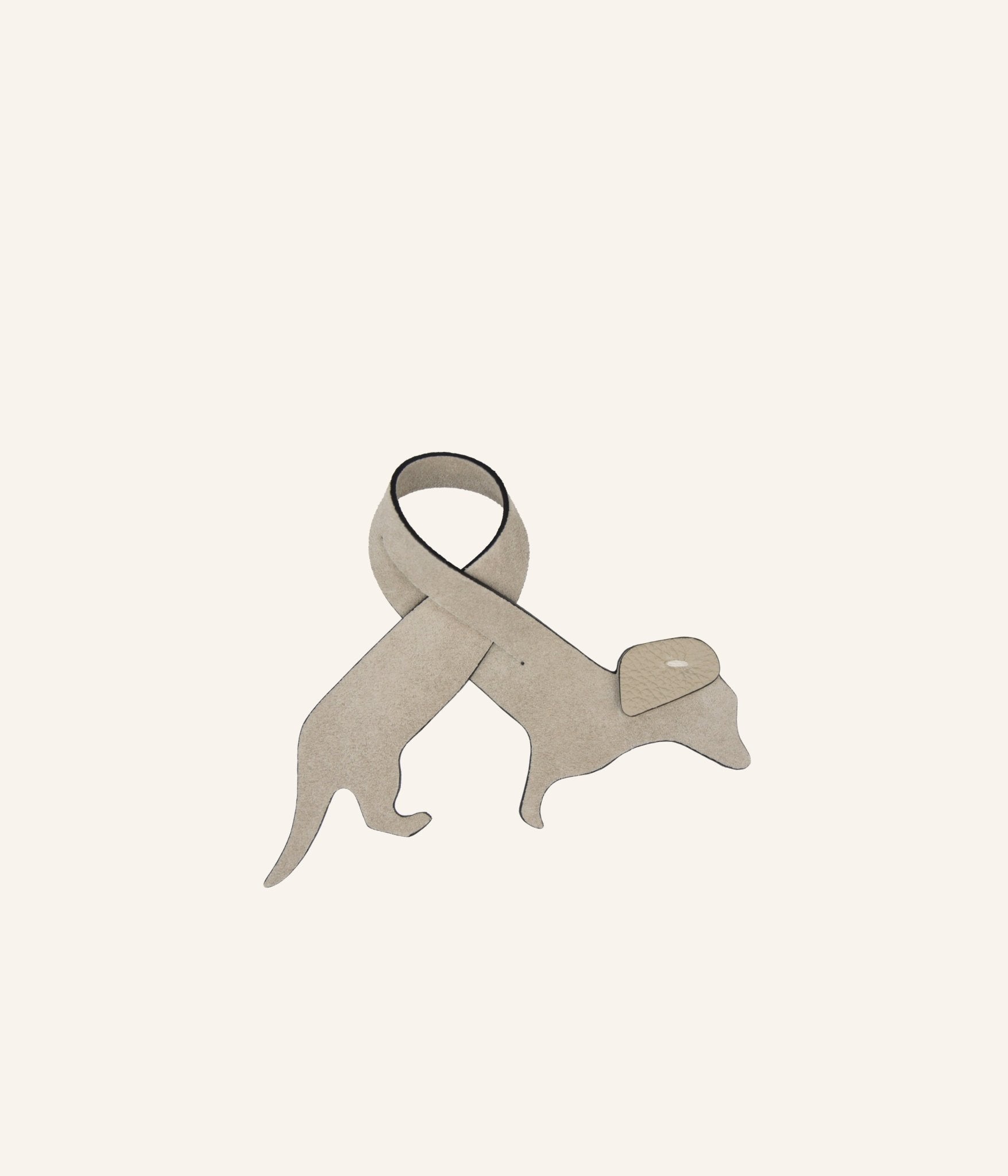 Our Teckel Charm in Calf Suede Dune captivates with its light and luminous shade, perfect for adding a natural touch of elegance to your bags. Handcrafted in Italy from exceptional suede, it attaches easily to a handle or strap, enhancing your accessories with a refined and timeless detail.