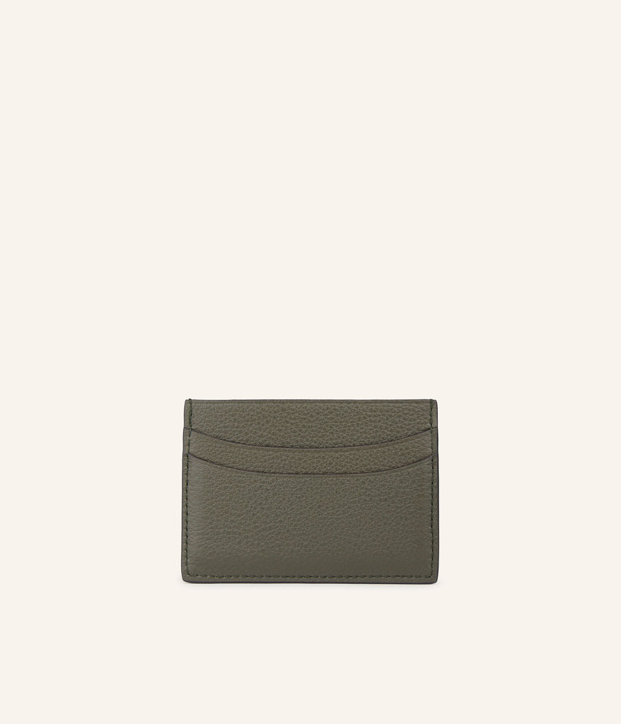 The Noa Vert Olive card holder, thanks to its compact format, fits easily into all mini bags. Handcrafted in Italy in grained calfskin, this card holder is the essential accessory for storing your most important cards.