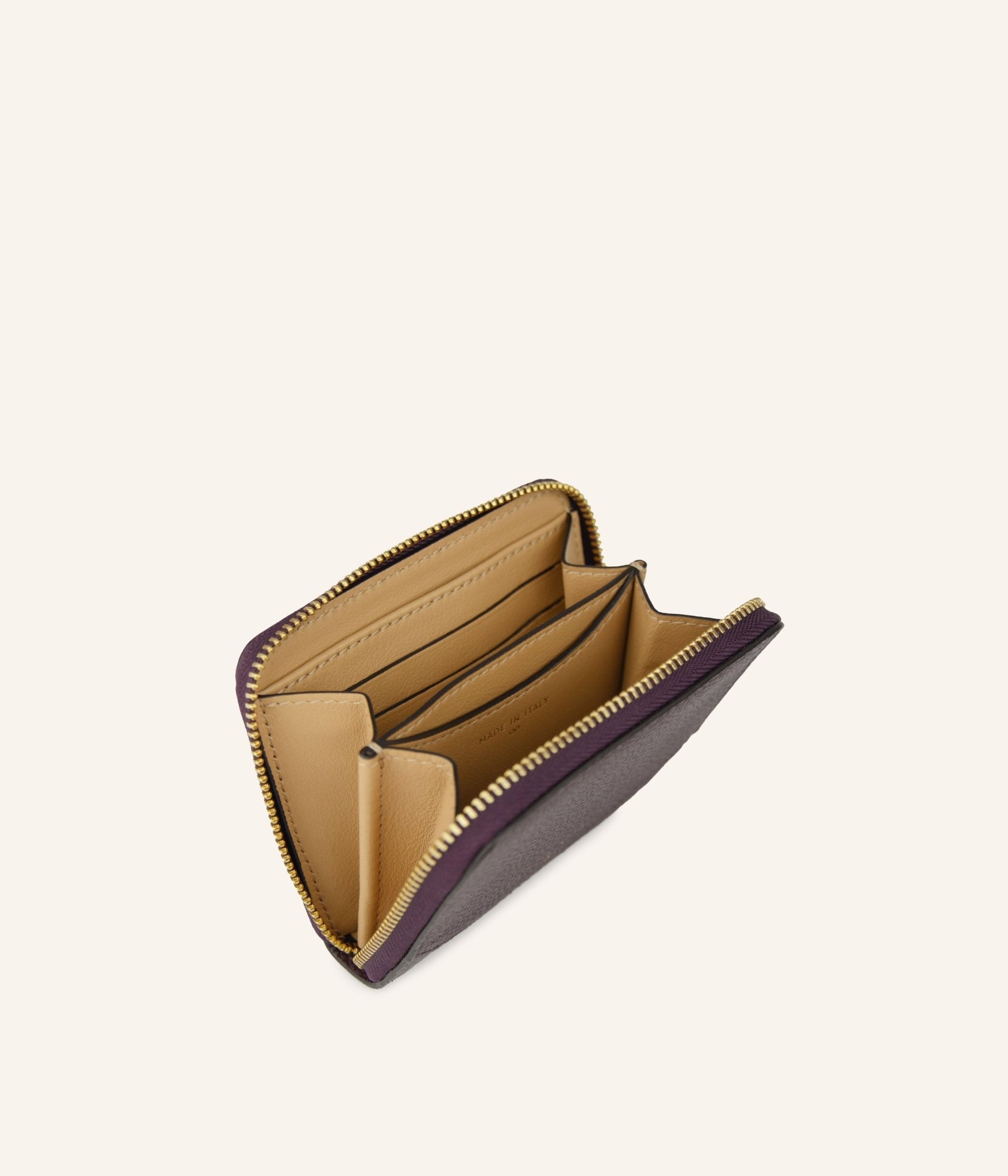 Crafted in Italy using refined artisanal expertise, the Ora Small Prune zipped wallet in grained calf leather combines elegance and functionality. Its compact format reveals a thoughtfully designed interior to organise cards, notes, and coins with ease. The deep, subtle Prune shade brings a sophisticated touch to everyday essentials, effortlessly complementing any look. A refined accessory, designed to accompany you with quiet elegance.