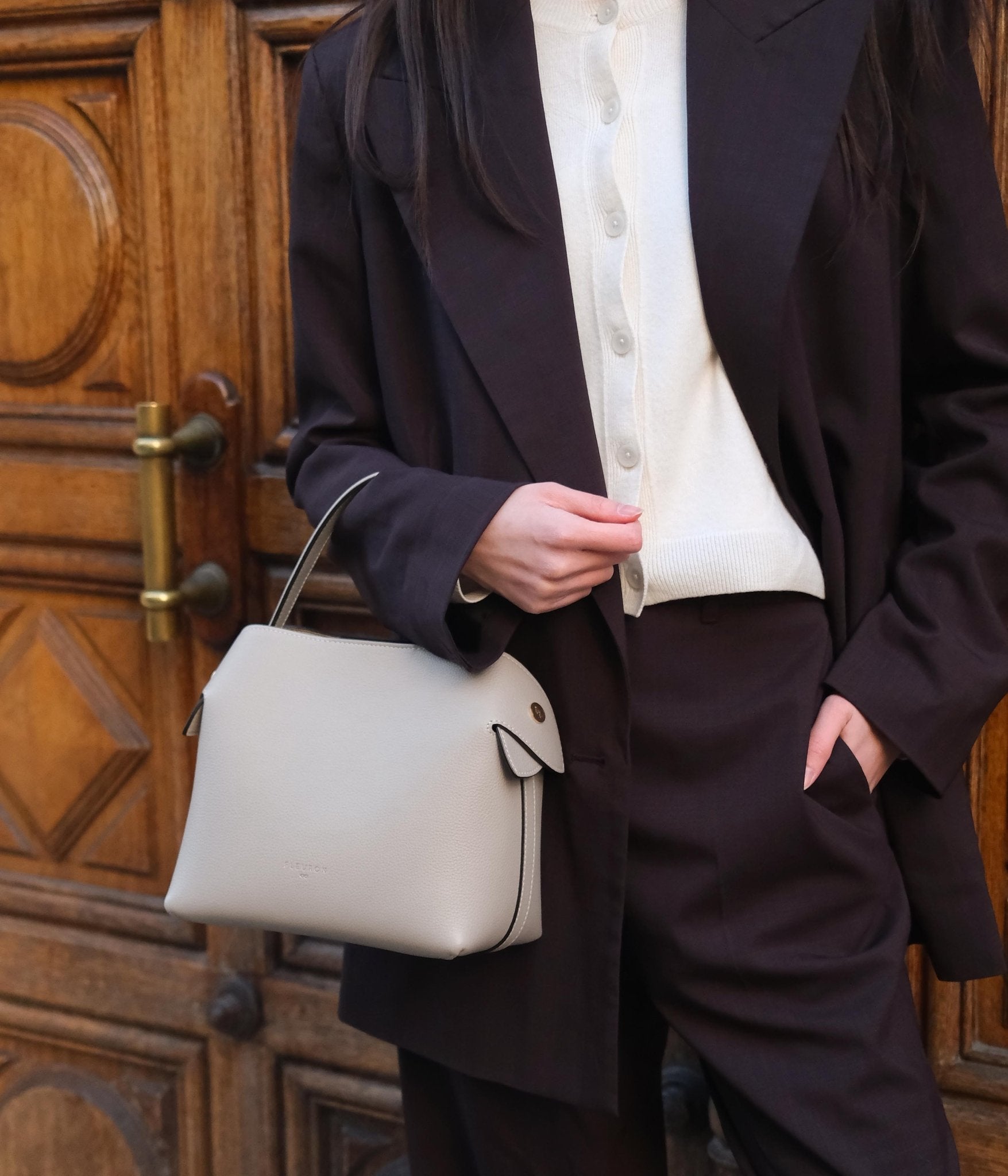 The Medium Swann in Cashmere grained calfskin captivates with its soft, enveloping shade, offering understated elegance in a more generous format. Subtle and refined, this color adapts effortlessly to every silhouette and transitions naturally through the seasons.