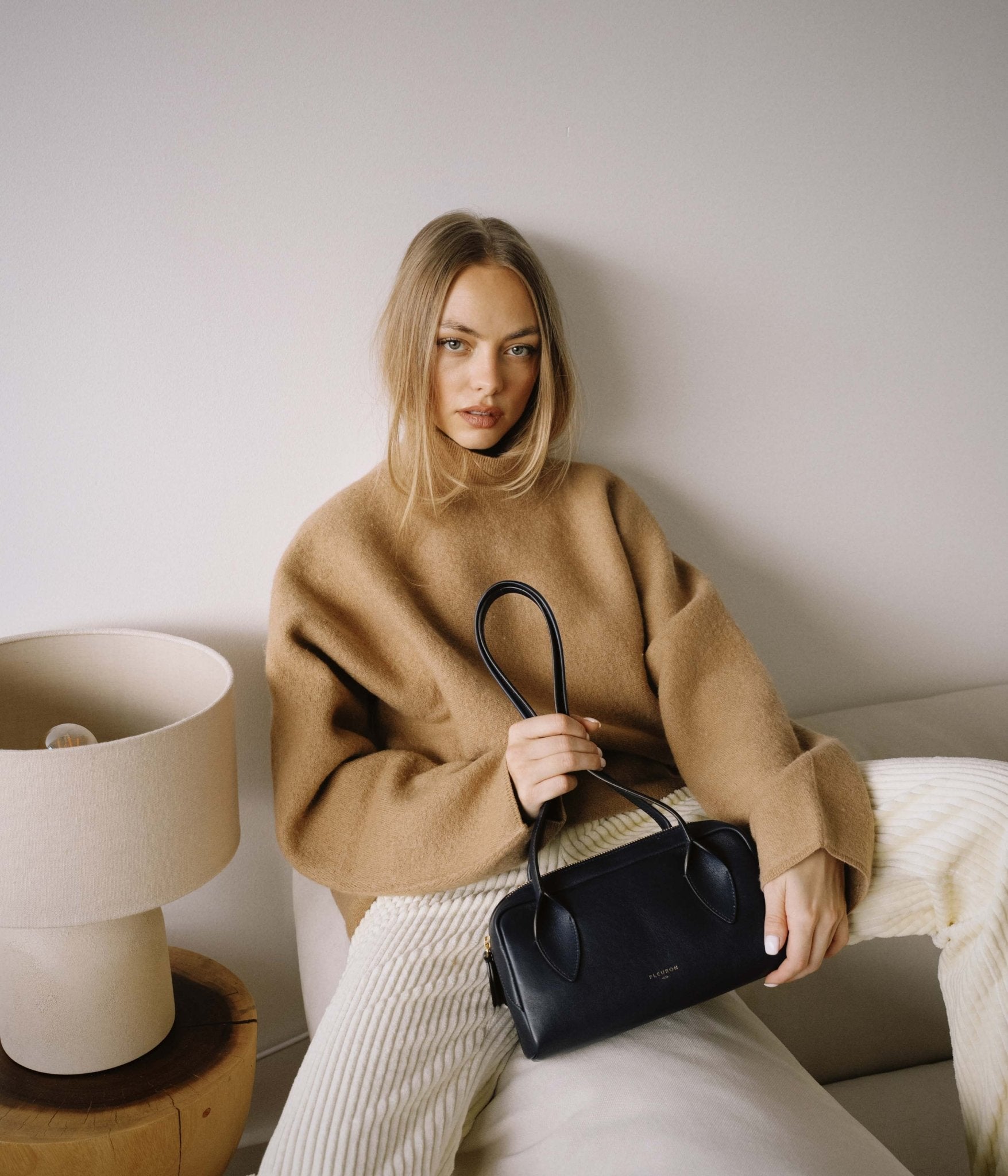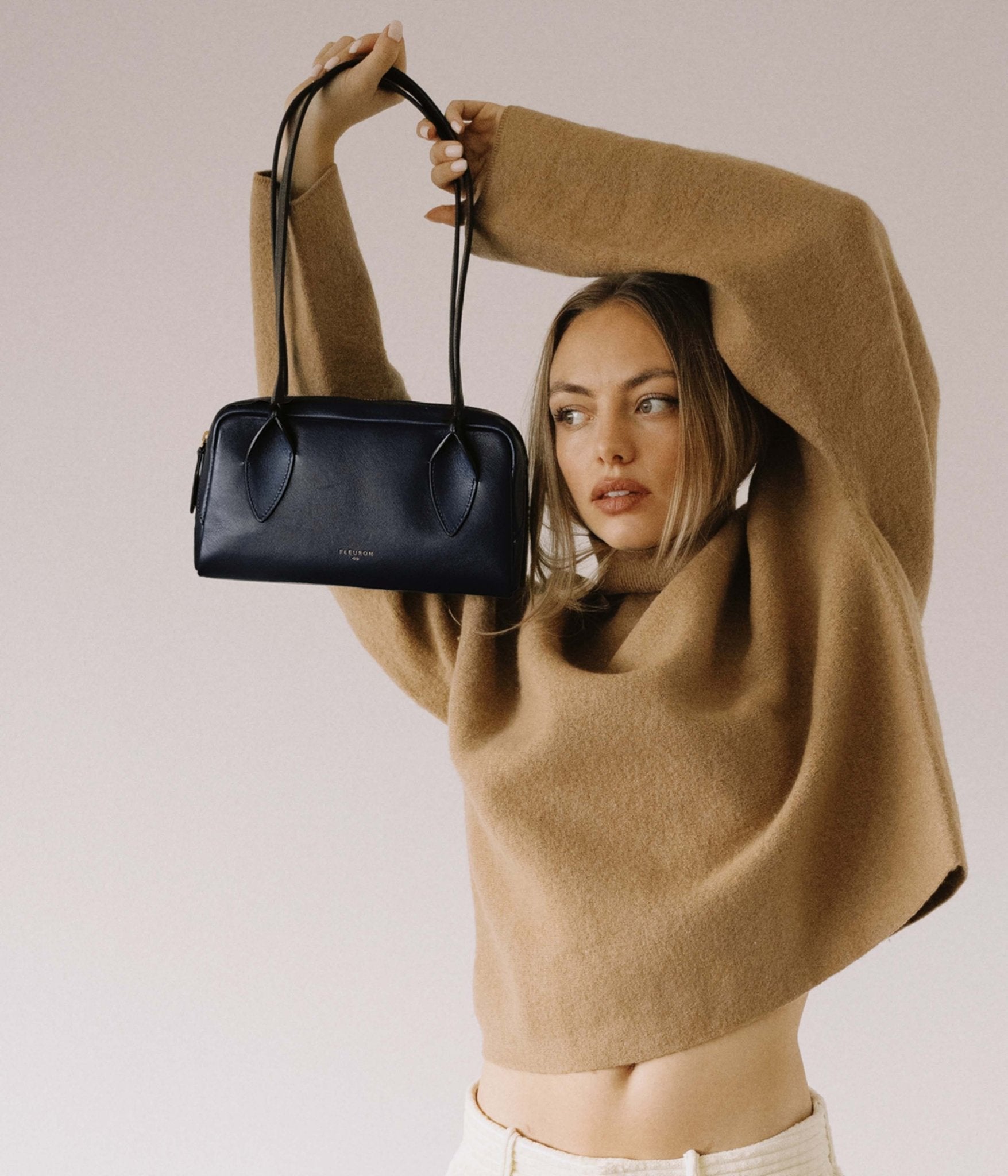 The Mini Bambou in Bleu Nuit, designed in Paris and handcrafted in our Italian atelier, embodies deep and timeless elegance. Its rich, sophisticated midnight blue shade adds a touch of character to any outfit, whether neutral or bold, offering a style that feels both classic and contemporary.